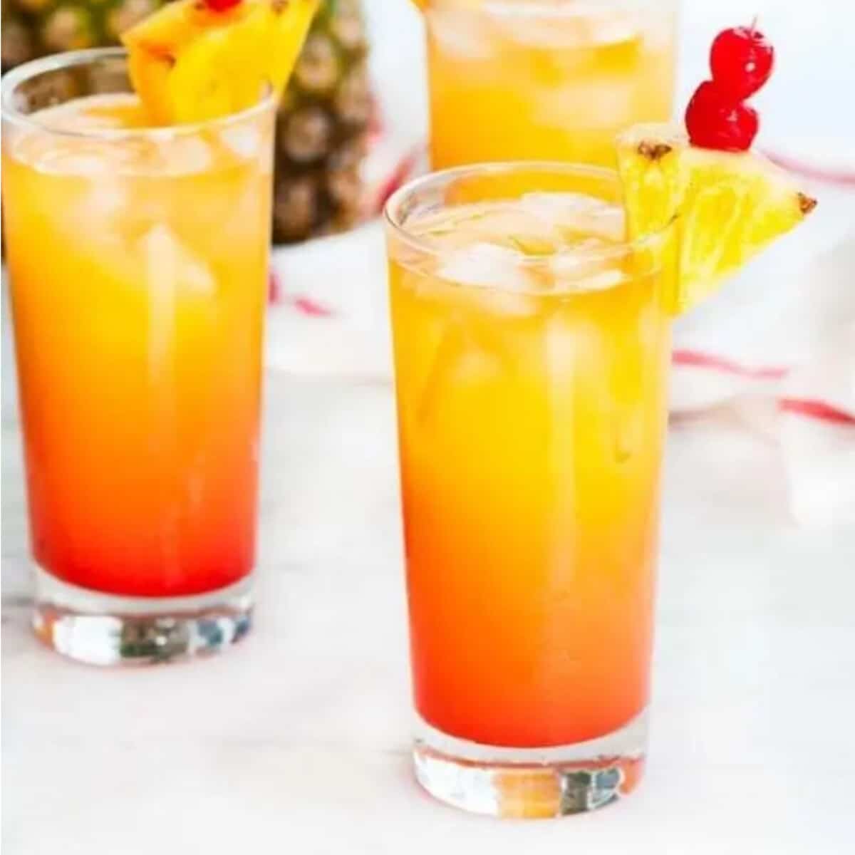 • Rainbow Paradise: Pineapple juice, grenadine, (white rum + curaçao)